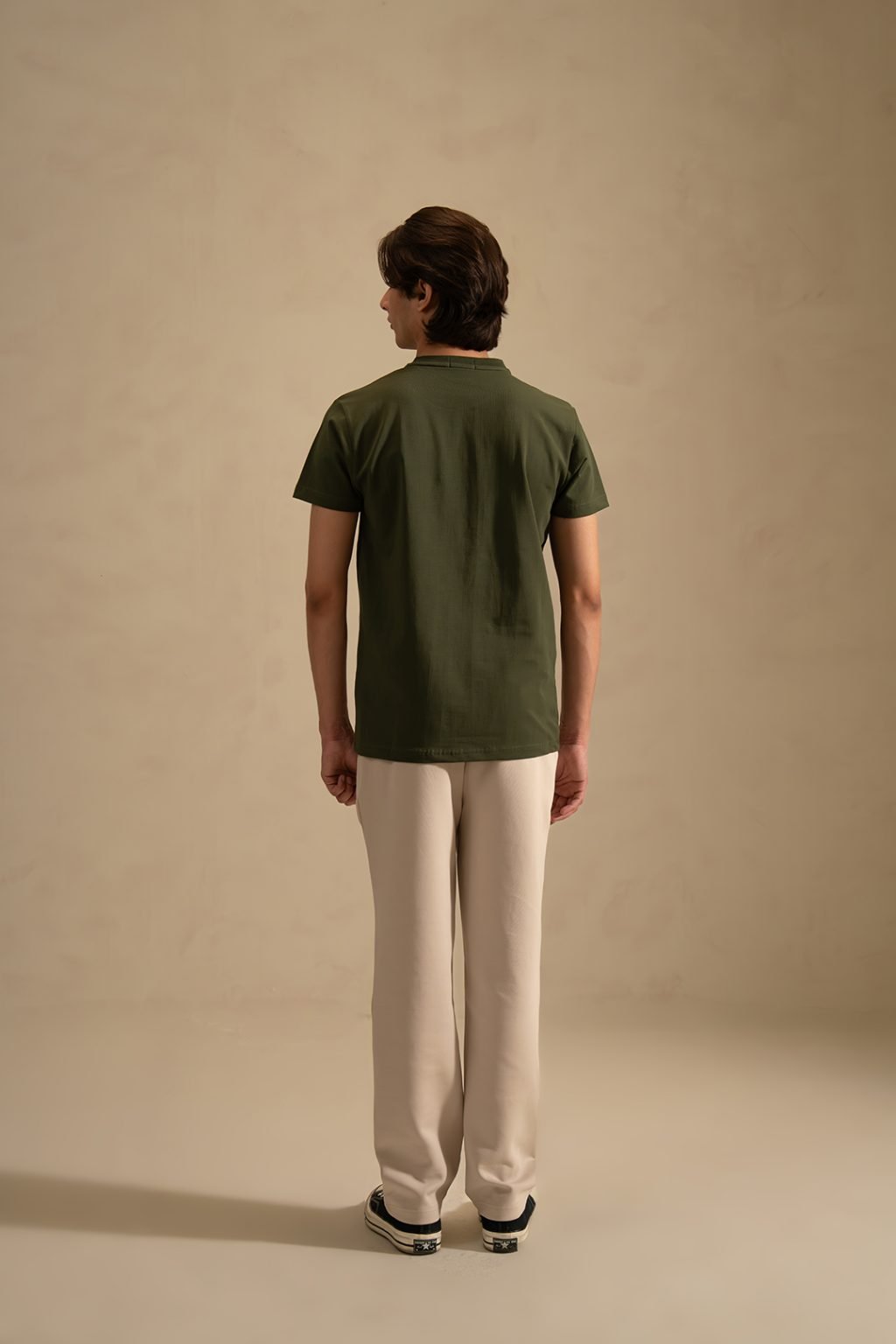 Crafted from 95%cotton & 5% Lycra, this slim fit T-shirt is cut close to the body for a clean, defined silhouette. Designed with a classic crew neck and short sleeves, and finished in a soft olive green that pairs effortlessly with both neutral and darker tones. Minimal, refined, and made for everyday wear.